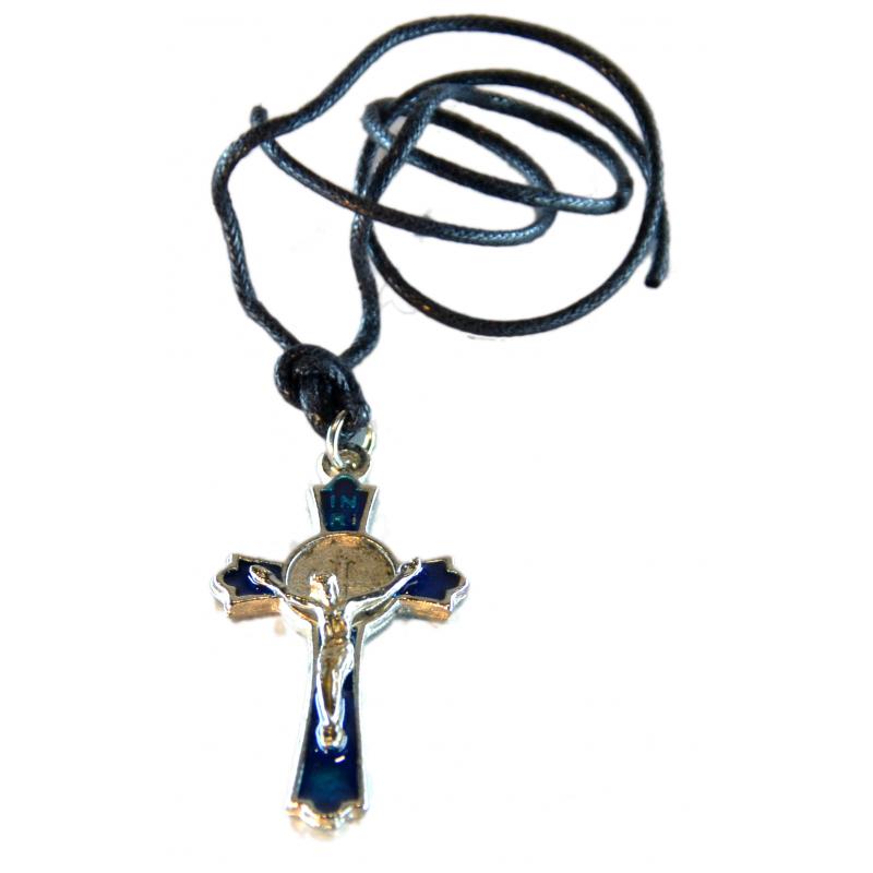 Cruz San Benito Esmaltada Azul 5 cm (con cordon)