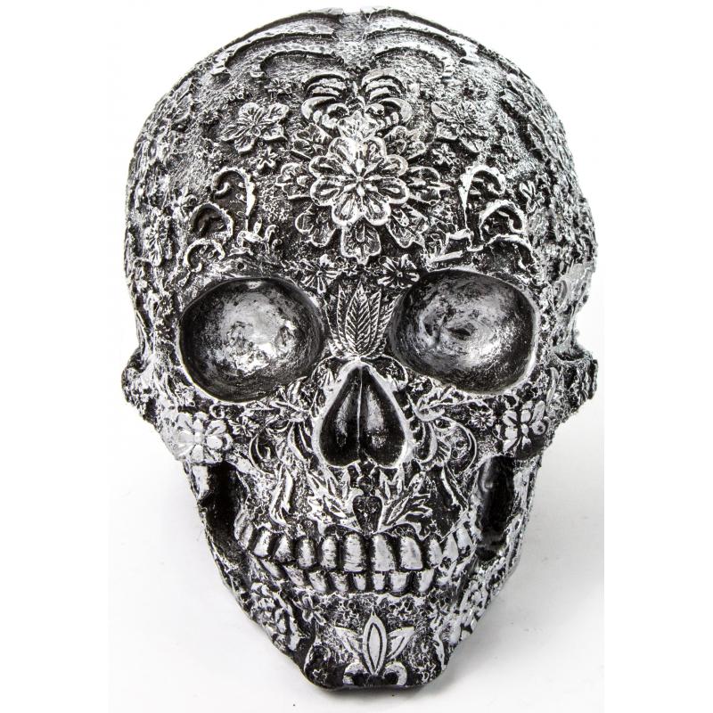 Imagen Craneo Calavera mexicana plateado 19 x 16 cm (resina)