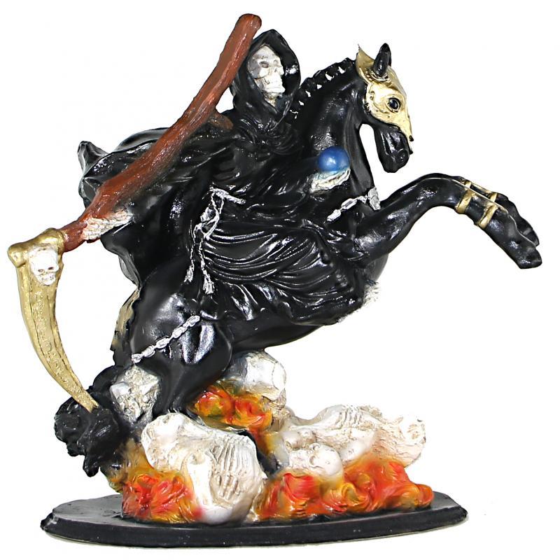 Imagen Santa Muerte Caballo 31 x 31 cm. (Negra) (c/ Amuleto Base) – Resina(has)