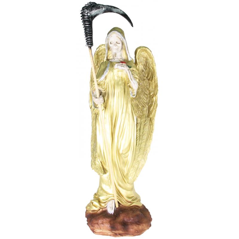 Imagen Santa Muerte con Alas y Rosa 70 cm (Dorada) (c/ Amuleto Base) – Resina, Artesanal