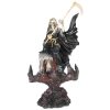 Imagen Santa Muerte Lapida Pata de Gallina 45 cm x 30 cm (Blanca) (Copa) (c/ Amuleto Base) – Resina, Artesanal (Color del Lazo Puede Variar)