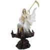 Imagen Santa Muerte Lapida Pata de Gallina 45 cm x 30 cm (Dorada) (Copa) (c/ Amuleto Base) – Resina, Artesanal (Color del Lazo Puede Variar)