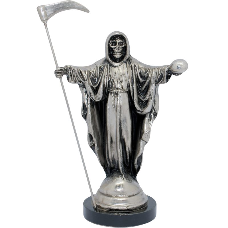 Imagen Santa Muerte Metalica 25 cm. Brazos Abiertos (Plateada)