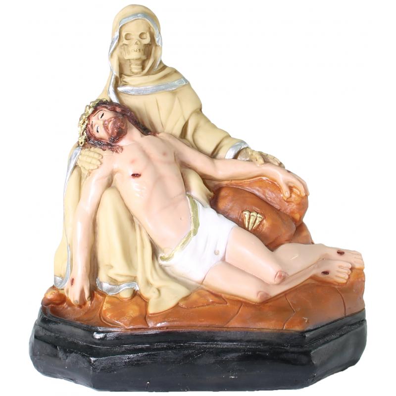 Imagen Santa Muerte Piadosa 32 x 32 cm (Hueso) (c/ Amuleto en Base) – Artesanal puede variar en forma y color de los detalles ,Resina