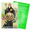 Este amuleto reproduce fielmente las antiguas medallas de San Benito donde aparece, rodeando la figura del santo, este texto latino en frase entera: