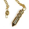 Péndulo metálico dorado forma bala. Engarzado con cadena de acero de aproximadamente 200 mm. de largo Medidas:aprox. 50 mm.