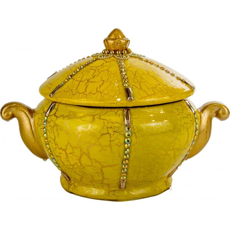 Sopera Ceramica Bombonera Decorada 30 x 21 cm Amarilla (Ochun)