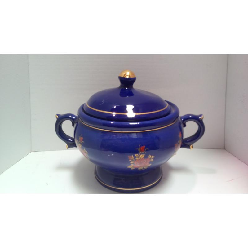 SOPERA Ceramica Redonda Asas c/ Flores y Pintura Oro 25 x 35 cm aprox. (Azul)