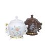 SOPERA Ceramica Redonda Asas c/ Flores y Pintura Oro 26 x 33 cm aprox. (Blanca)