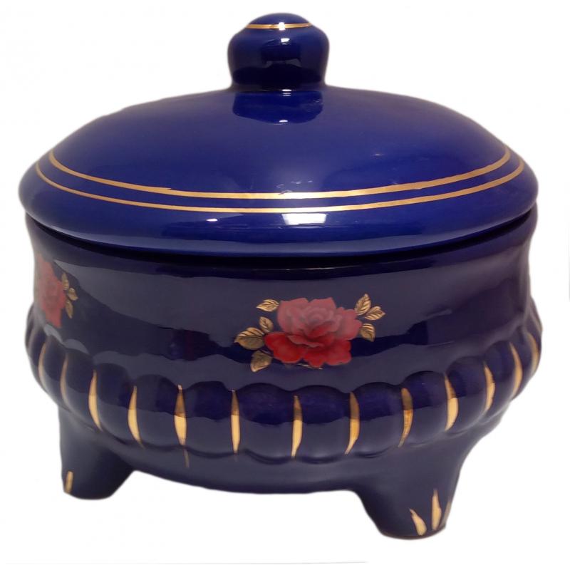SOPERA Ceramica Redonda c/ Flores y Pintura Oro 20 x 23 cm aprox. (Azul)