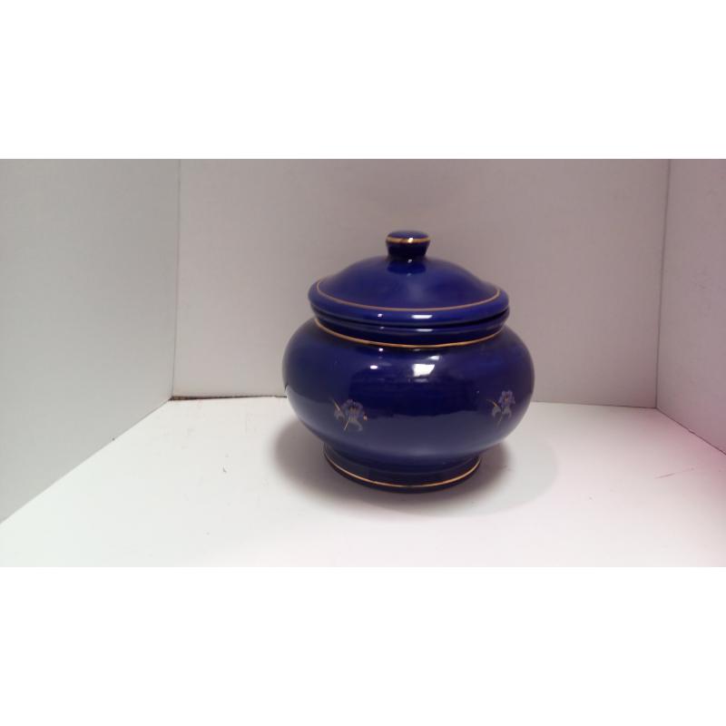 SOPERA Ceramica Redonda c/ Flores y Pintura Oro 22 x 23 cm aprox. (Azul)