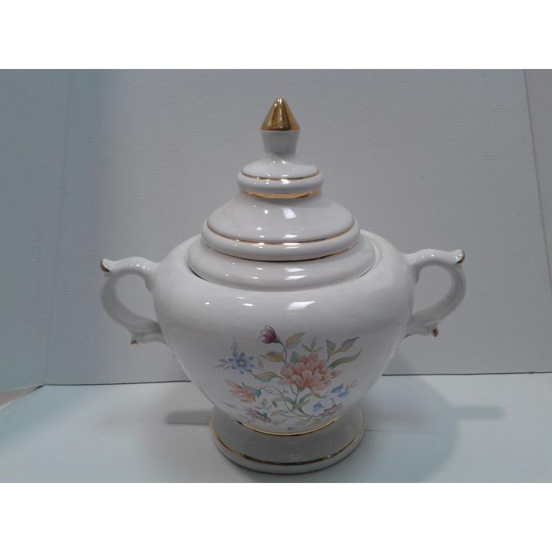 SOPERA Ceramica Tipo Copa Asas c/ Flores y Pintura Oro 31 x 33 cm aprox. (Blanca)