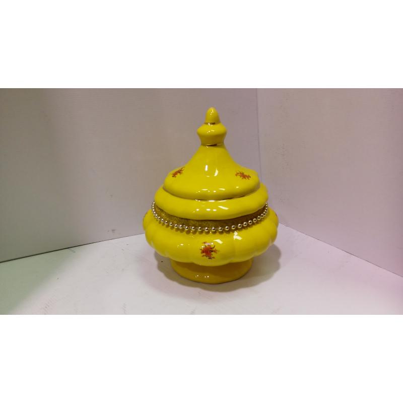 SOPERA Ceramica Tipo Copa c/ Flores y Pintura Oro 27 x 23.5 cm aprox. (Amarilla)