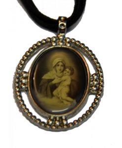 MEDALLA c/ Cordon Virgen con Niño Modelo Nº 2 3.5 x 3 cm aprox. (Incluye Estampa con Oracion)