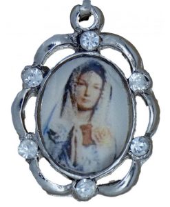 MEDALLA c/ Cordon Virgen con Niño Modelo Nº 1 3.5 x 3 cm aprox. (Incluye Estampa con Oracion)